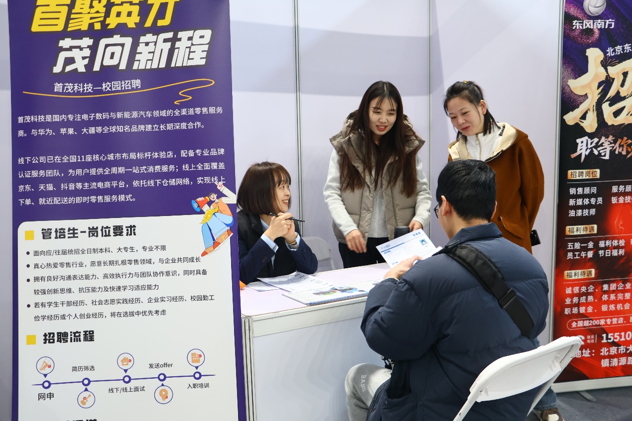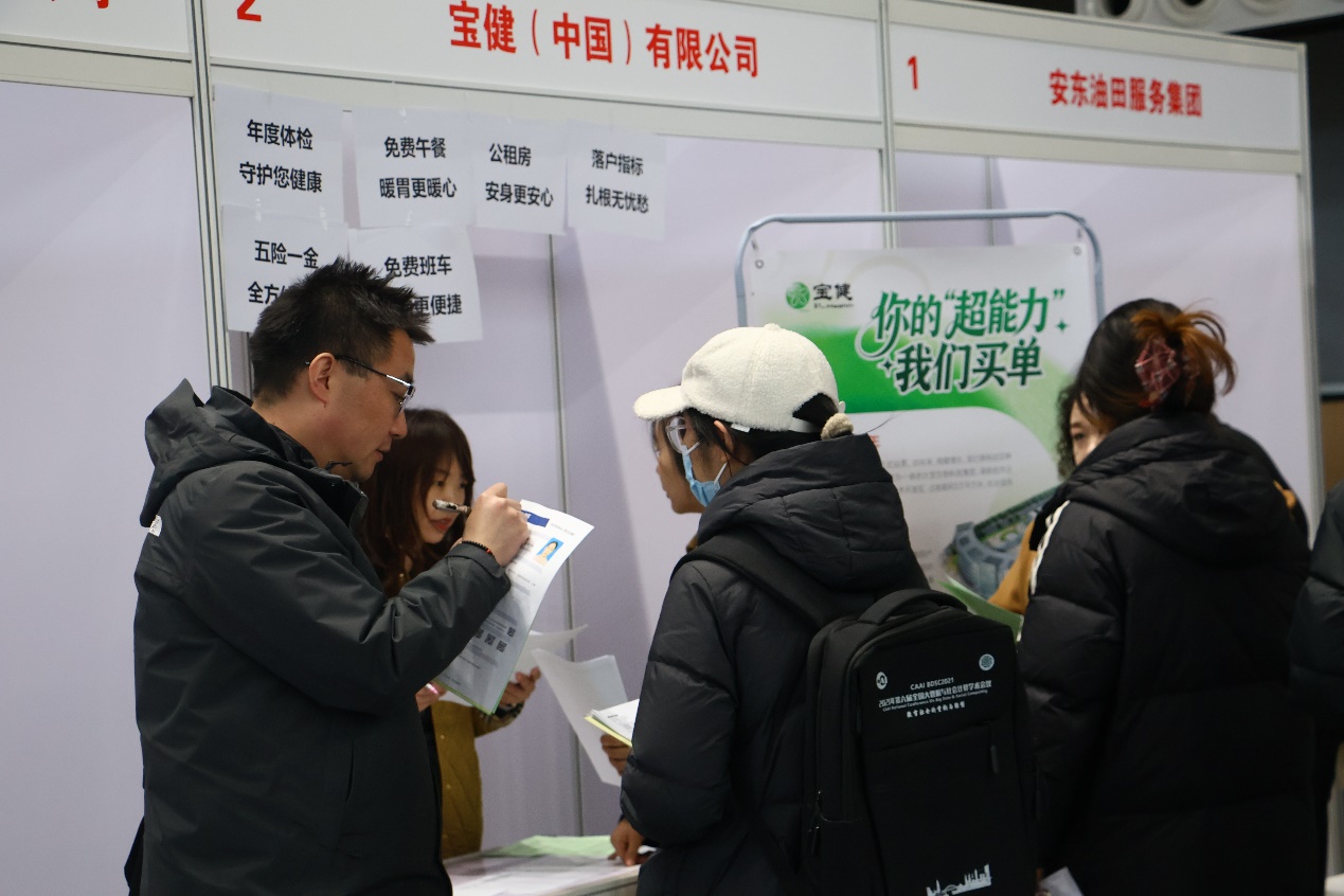 搶抓春招關鍵期,“早”字當頭促就業。3月10日下午14:00,我校2026屆畢業生春季學期第一場校園招聘會在清源校區體育館舉行,中國輕工建設工程有限公司、中鈔設計制版有限公司、中國航天科技科技集團第五院研究院總裝與環境工程部、北京市液化石油氣有限公司、康龍化成(北京)新藥技術股份有限公司、中科艾爾(北京)科技有限公司、天得一清環境裝備(北京)股份有限公司、延鋒海納川汽車飾件系統有限公司、SMC(中國)有限公司、北京東風南方汽車銷售服務有限公司、龍基能源集團有限公司、北京中燕建設工程有限公司等共52家用人單位帶來1461個崗位需求現場招賢納士,超過1800名本碩學生參加了招聘會。