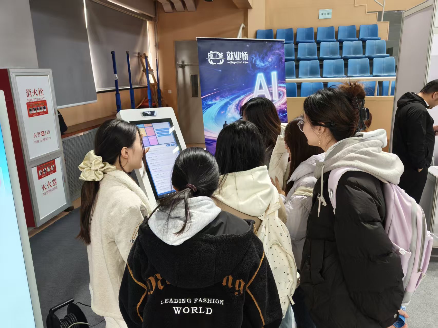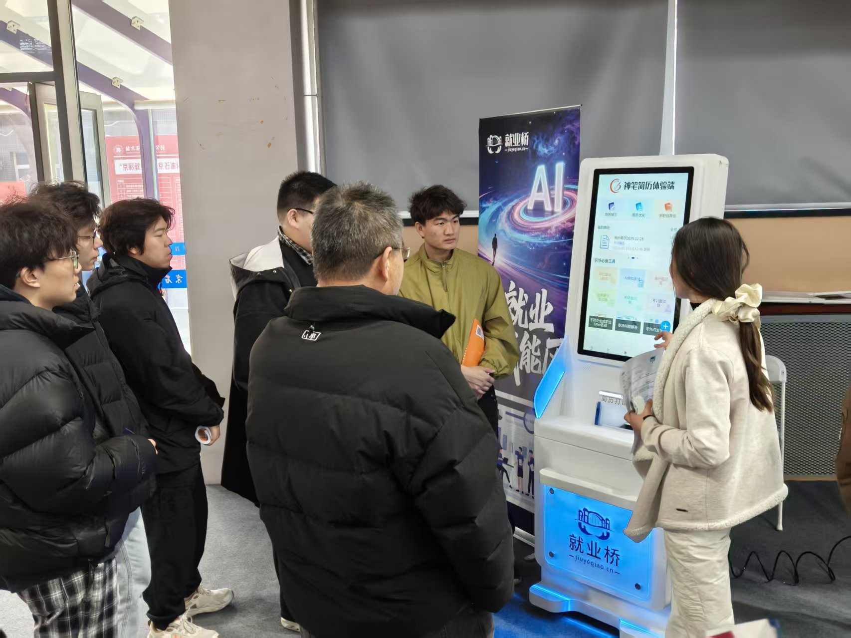 學校就業指導中心在招聘會現場為學生提供了全流程AI智能化求職支持服務。現場部署AI簡歷一體機,提供簡歷智能診斷與優化服務;通過AI模擬面試系統還原真實職場場景,同步配套AI生涯規劃一體機開展職業路徑指導,全方位助力畢業生提升求職競爭力。