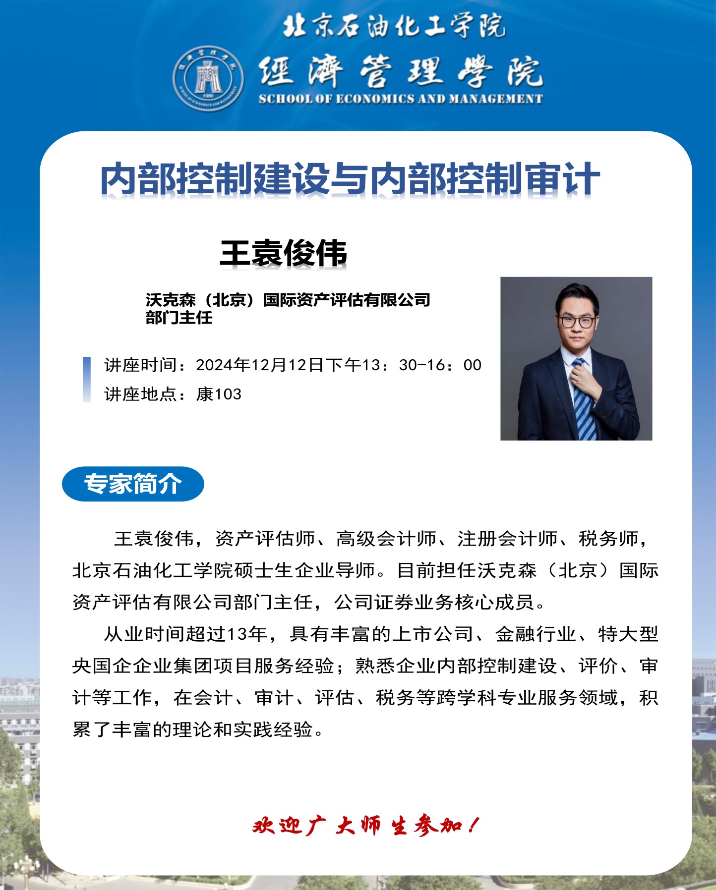 經(jīng)濟管理學院學術講座通知:內部控制建設與內部控制審計