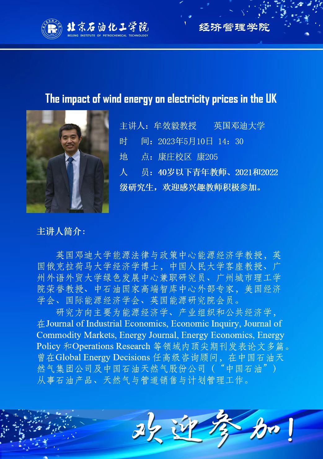 學術講座通知:風能對英國電價的影響