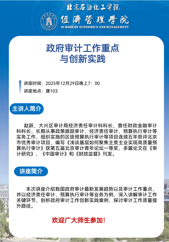 講座通知:政府審計工作重點與創新實踐