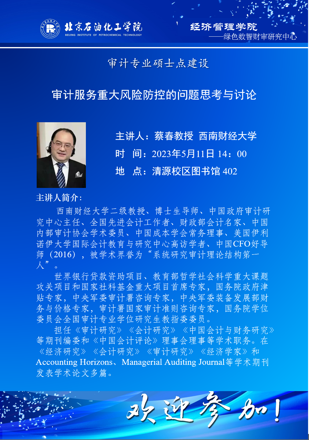 學術講座通知:審計服務重大風險防控的問題思考與討論