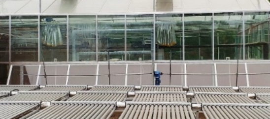 工程示范方面,2018年12月底在河北廊坊建成了結(jié)合太陽(yáng)能跨季節(jié)土壤蓄熱的土壤源熱泵供暖示范系統(tǒng),供暖對(duì)象為1棟112平米的Venlo型玻璃溫室(如圖2所示)。系統(tǒng)主要由玻璃溫室、熱泵機(jī)組、風(fēng)機(jī)盤管、蓄熱水箱、太陽(yáng)能集熱器及地埋管井群等設(shè)備構(gòu)成,同時(shí)集成了太陽(yáng)能集熱運(yùn)行控制、系統(tǒng)能耗監(jiān)測(cè)、土壤溫度監(jiān)測(cè)等軟件平臺(tái),可實(shí)現(xiàn)遠(yuǎn)程監(jiān)控和自動(dòng)運(yùn)行。