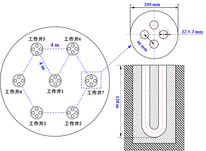 (c)地埋管井群布置方案及工作井結(jié)構(gòu)