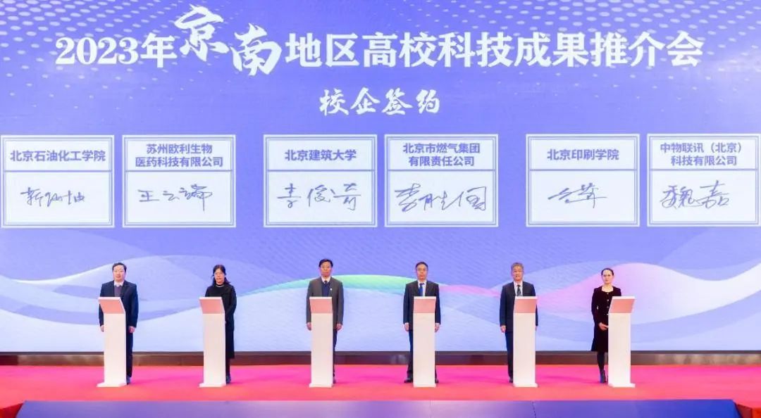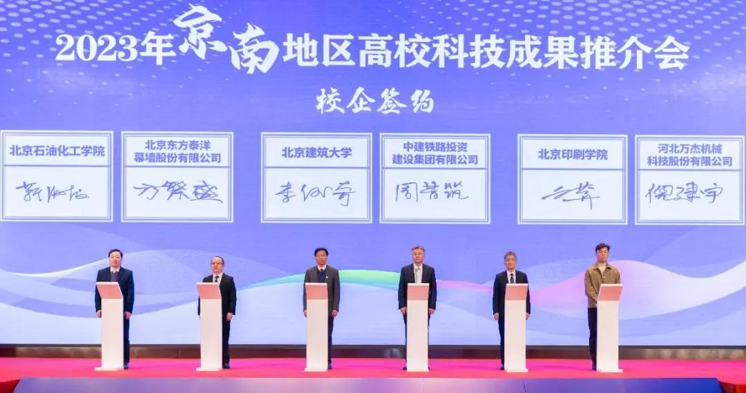 會上,北京建筑大學與中建鐵路投資建設集團有限公司、北京市燃氣集團有限責任公司,北京印刷學院與河北萬杰機械科技股份有限公司、中物聯訊(北京)科技有限公司,北京石油化工學院與北京東方泰洋幕墻股份有限公司、蘇州歐利生物醫藥科技有限公司分別簽署合作協議,進一步深化校企協同發展。