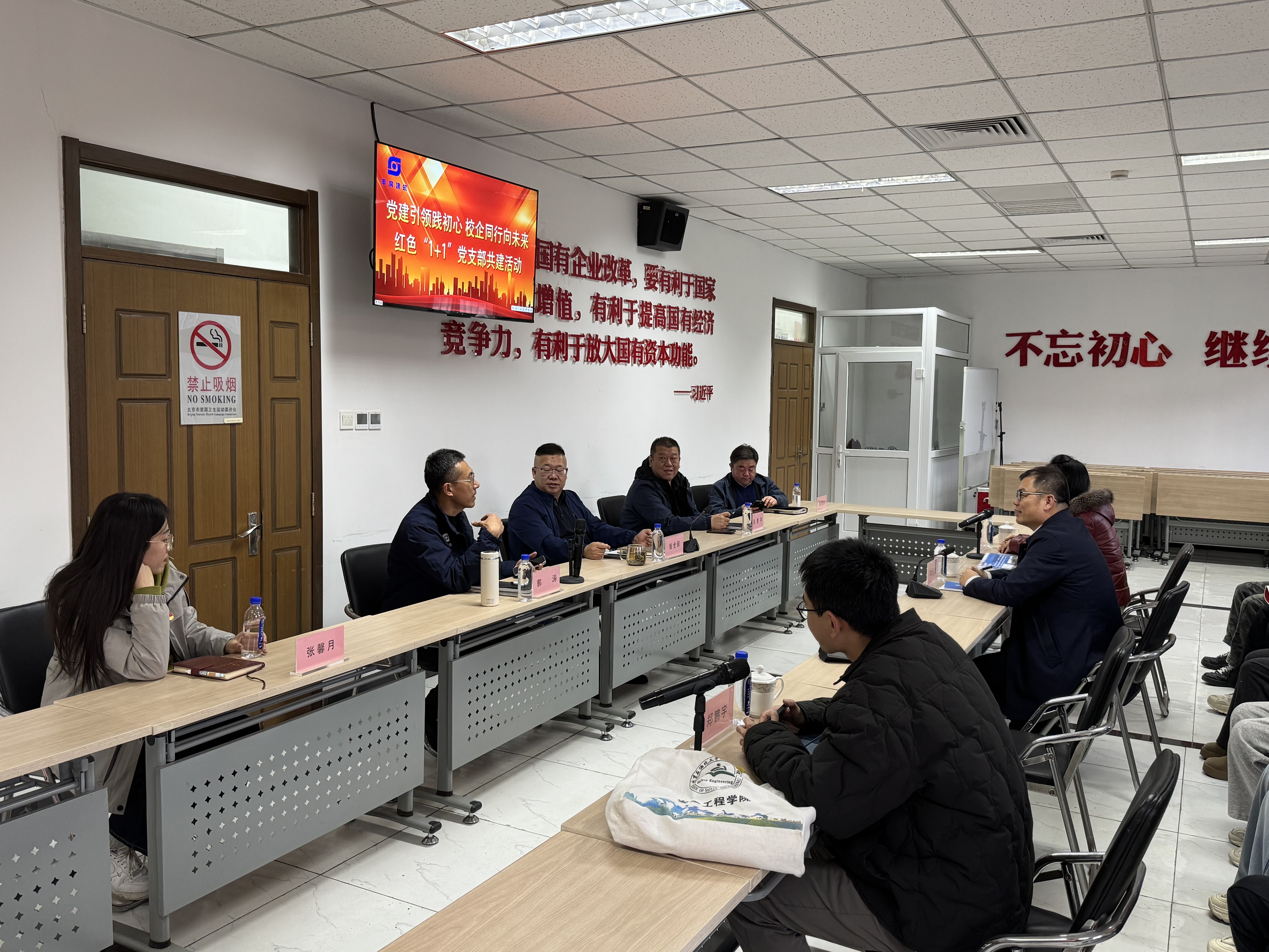為深化黨建引領作用,搭建校企合作共贏平臺,近日,我校安全工程學院組織師生黨員赴北京市豐房建筑工程有限公司(以下簡稱“豐房建筑”),聯合開展“黨建引領踐初心,校企同行向未來”紅色“1+1”黨支部共建暨訪企拓崗活動。學院黨委副書記兼副院長劉化龍、學生黨支部書記孟倩倩、鄭鵬宇、康健,豐房建筑總經理張全振、安全總監郭濤等雙方代表參加活動。