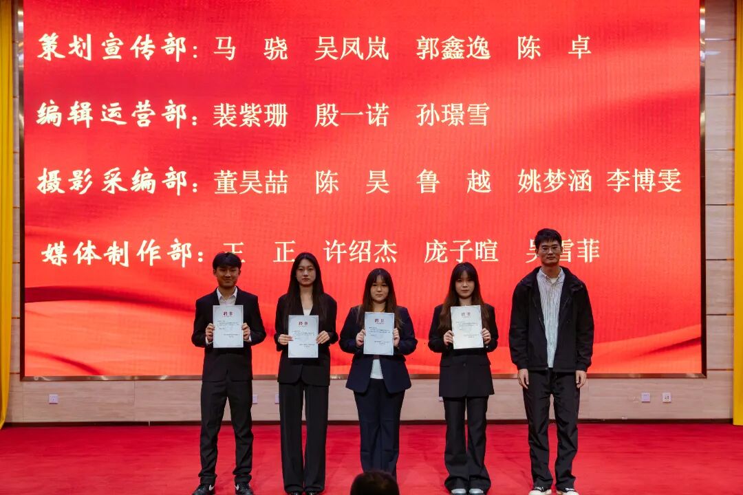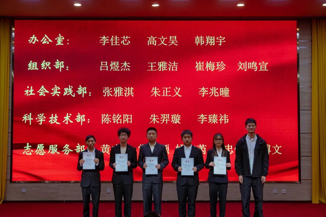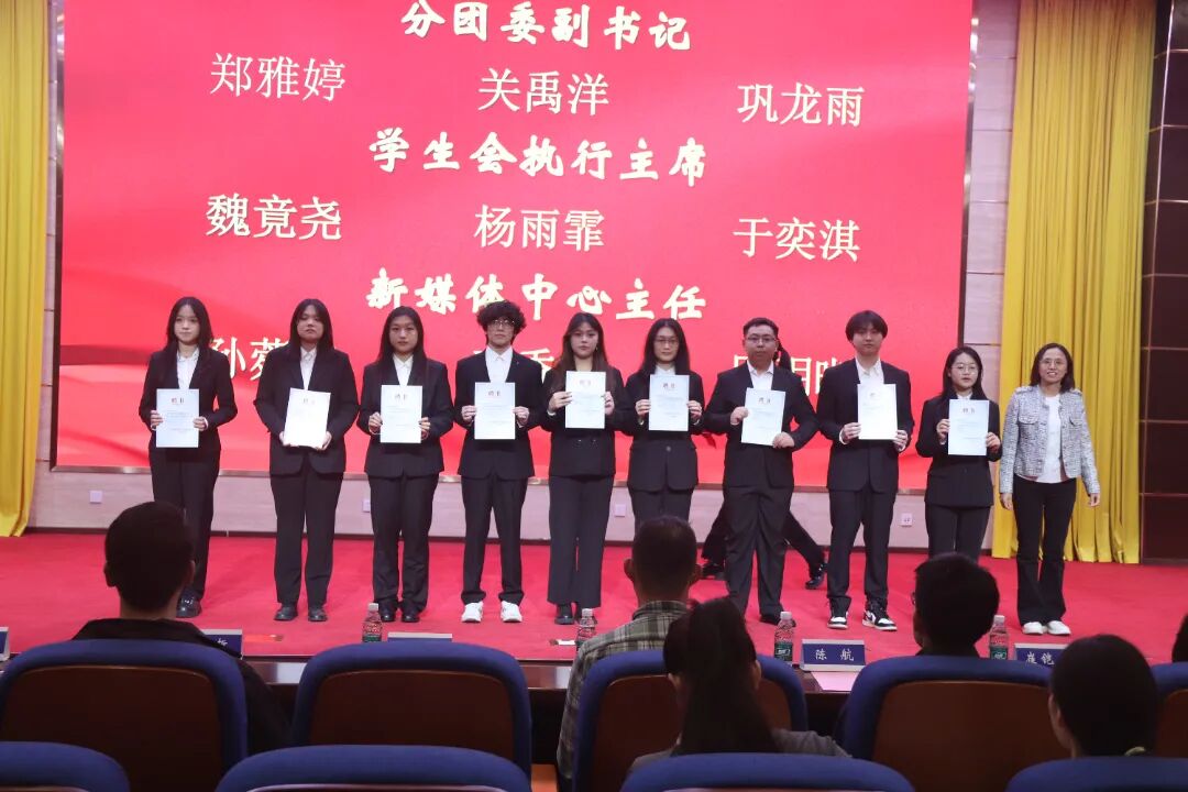 成立大會上,學生工作辦公室主任任蘋老師為新一屆團委副書記(學生)、學生會執(zhí)行主席、新媒體中心主任頒發(fā)了聘書。團委書記楊哲為各部門部長代表頒發(fā)了聘書。