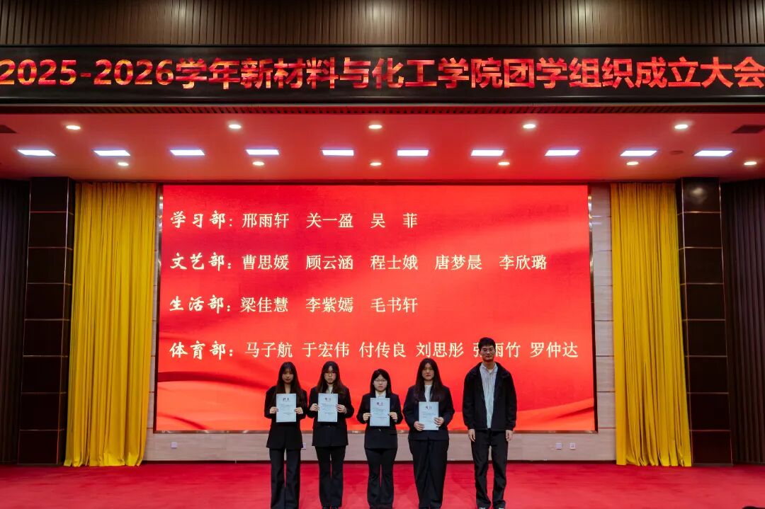 在激昂的中國共產(chǎn)主義青年團團歌聲中,2025-2026學年新材料與化工學團學組織成立大會圓滿落幕!