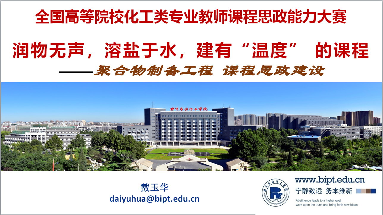 為推進我國化工類專業課程思政建設,全面提升化工類專業人才培養質量,2021年4月,中國化工教育協會發布了《關于舉辦全國高等院校化工類專業教師課程思政能力大賽的通知》(中化教協發〔2021〕7號)。我校作為會員單位,積極組織并推薦教師參賽,新材料與化工學院的老師們積極報名參賽。學院一直高度重視課程思政建設,目前已有9門課程立項校級重點課程思政項目,4門課程為校級首批課程思政示范課程,《聚合物制備工程》便是其中之一,該課程2020年還獲評了北京高校優質本科課程(重點)。本次大賽獲獎,也充分體現了新材料與化工學院課程思政建設的質量與水平,學院也將繼續堅持以立德樹人為根本,進一步發揮教師隊伍“主力軍”、課程建設“主陣地”、課堂教學“主渠道”作用,全面推進課程思政高質量建設,為培養高水平、高素質的應用型人才、打造新時代首善之區工程師搖籃而努力。
