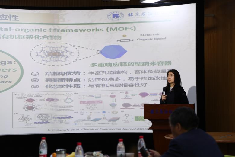 北京航空航天大學于美教授、中冶建筑研究總院王東林教授、北京化工大學李志林教授、中國航發北京航空材料研究院姜國杰研究員、北京石油化工學院陳飛教授等專家作大會特邀報告,分別圍繞鋼材熱鍍鋅技術、鈦合金表面耐蝕、低能耗等離子電解氧化技術、航空用腐蝕維護維修材料、建筑鋼結構防腐蝕工程等領新技術的應用與發展提供明確的指引。北京工商大學樊保民副教授、北京科技大學強玉杰副教授、北京石油化工學院張優副教授等青年學者結合新材料與腐蝕防護領域交叉融合的學術前沿,在大會上進行了精彩的主題報告。