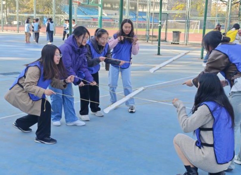 此次活動形式多樣,包括熱身、破冰、組隊、競技和集體游戲等部分,開展了“破冰起航”“百人戰鼓”“管道奇兵”“動力繩圈”等考驗團體協作精神的趣味項目。同學們在這些環節中逐漸熟悉,加深了解,增強了團隊歸屬感,體會到協作的重要性,在思維碰撞中展示了團隊精神,為今后集體學習生活筑牢根基。