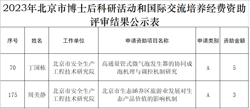 市安工院兩名博士后項目喜獲北京市博士后科研活動經費資助