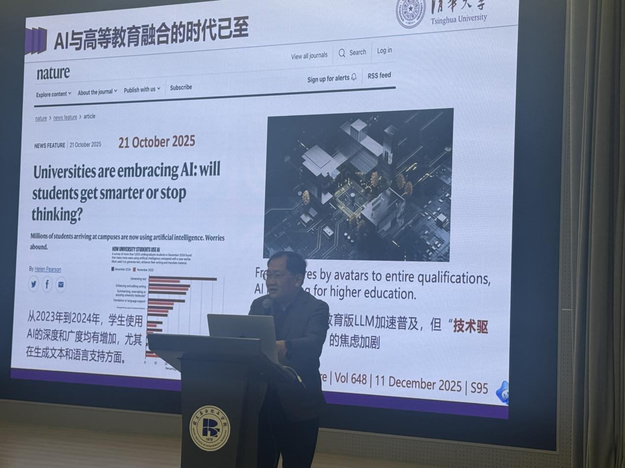 王騰在開場致辭中指出,教育數字化轉型是高等教育高質量發展的核心驅動力,人工智能與教育教學的深度融合,是我校推進智慧課程建設、深化教學改革的重要方向。本次講座旨在為全校教師搭建前沿學術交流平臺,借鑒頂尖高校在智慧慕課建設、AI 賦能學科建設與課程改革方面的實踐經驗,為我校智慧課程建設工作注入新動能。