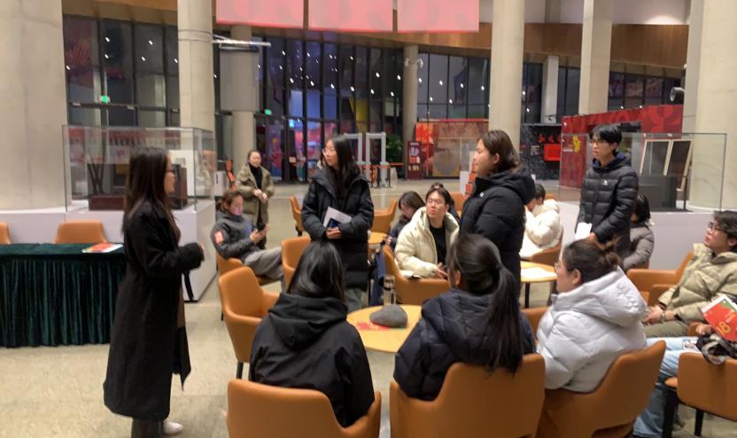 整體園區內,丁碩同學全程跟隨講解員,配合完成講解輔助工作;第二展區在丁禺疆老師指導下,李怡揚、楊銘同學克服現場低溫環境,承擔蓋章、服裝展示及觀眾分流引導工作,優化游覽體驗。
