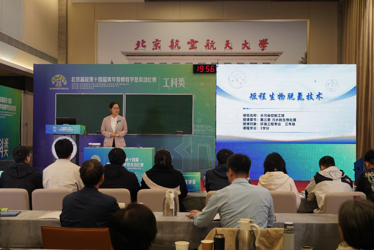 馬雪姣老師在本次教學競賽中,講授了《水污染控制工程》的“短程生物脫氮技術”一節。作為環境工程專業的青年教師,她理論基礎扎實,在教學中注重將前沿成果與工程實踐有機融合。課堂采用“問題導入—原理探究—工藝應用—工程案例—前沿拓展”的遞進結構,引導學生從富營養化等現實環境問題出發,逐步掌握短程脫氮的生化原理、調控機制與典型工藝,實現了從理論認知到工程應用的思維跨越。她以SHARON工藝、污水處理廠改造等實例系統闡釋技術機理,并結合學科動態拓展學生視野,引導學生理解工藝優化與系統思維在工程實踐中的重要性。這種教學方式既夯實了學生的專業基礎與分析能力,也有效激發了學生面向行業發展的創新意識與探索精神。