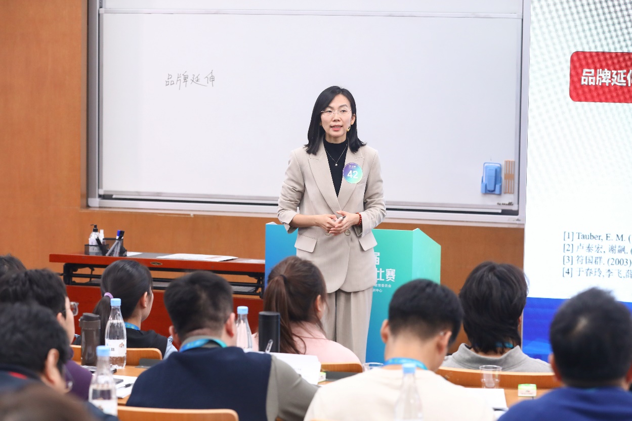 王艷老師在比賽中講授了《市場營銷學》中的“品牌延伸”一節。作為本科生授課教師,她具有扎實的理論功底和豐富的行業實踐經驗,注重將理論和實踐相結合。課堂講授采用“是什么”、“為什么”、“如何做”的層次結構,引導學生從認知沖突走向理論構建與策略遷移,符合學生從具象到抽象的認知發展規律。她運用案例教學法,借助華為等真實企業情境,幫助學生深入理解品牌延伸的本質與邊界,并進一步指導學生運用范圍經濟、協同效應等理論工具分析市場現象。這種教學方式不僅強化了學生對專業知識的掌握與應用能力,也激發了其對品牌策略的探究興趣,提高了學生的自主學習能力和創新意識。